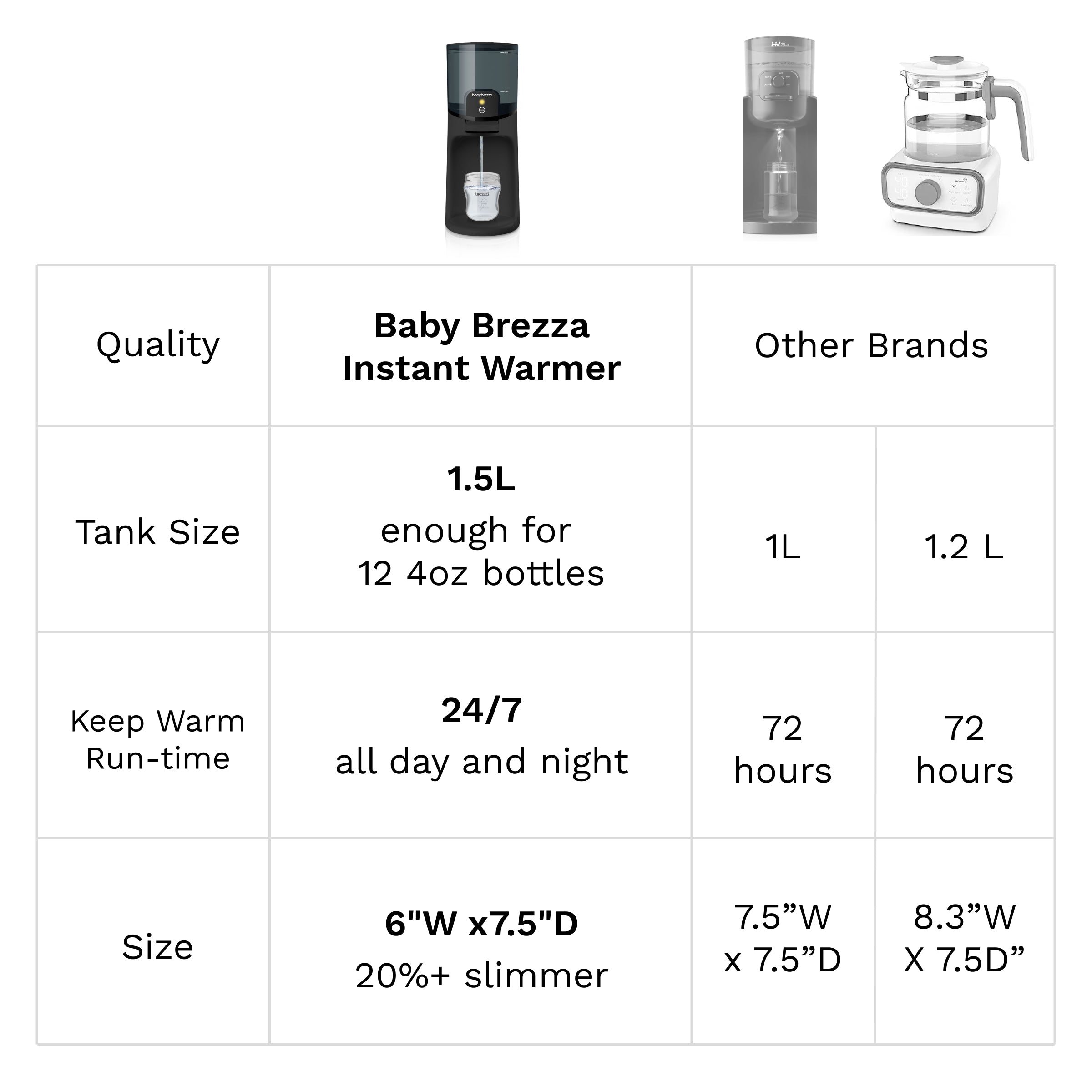 - Largest water tank – Holds 1.5 liters or 50 oz; 50% larger than other brands and enough for nearly two days of bottles